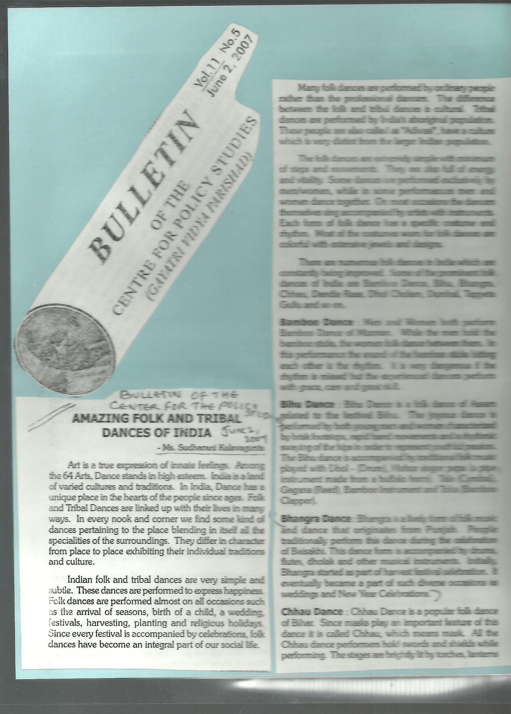 Amazing Folk and Tribal Dances of India - "Bulletin of the Centre for Policy Studies", June 2007