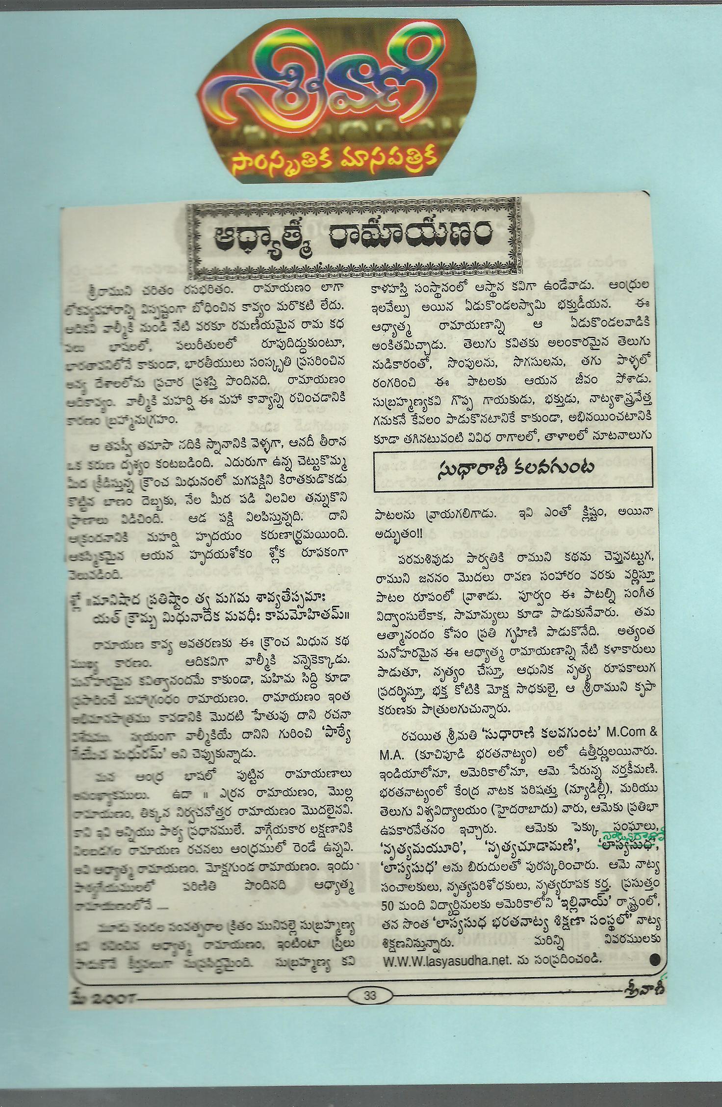 Kuchipudi Yakshaganam-Siddhendruni Bhamakalapam - "Telugu Vidyarthi", June 2007