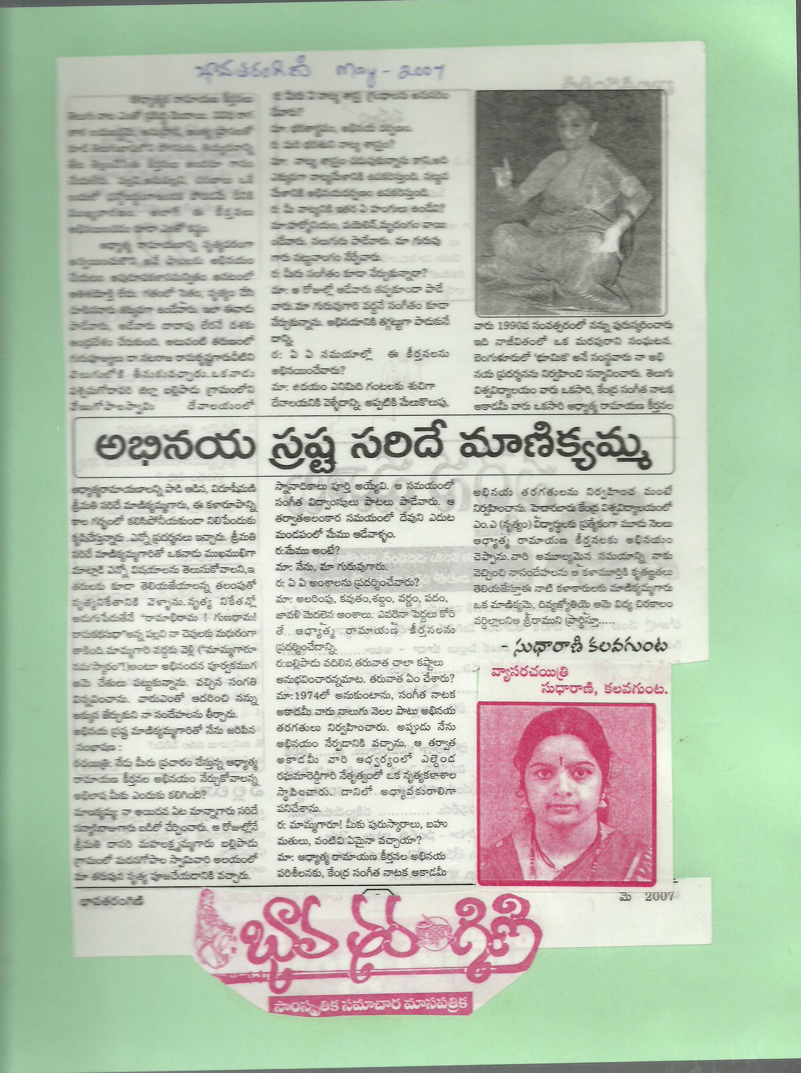 Abhinaya Srashtha Srimati Saride Manikyamma - "Bhava Tarangini", May 2007