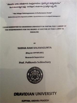 Telugu Yakshaganams: A Performance Study, Doctorial Thesis-2006-07 Batch