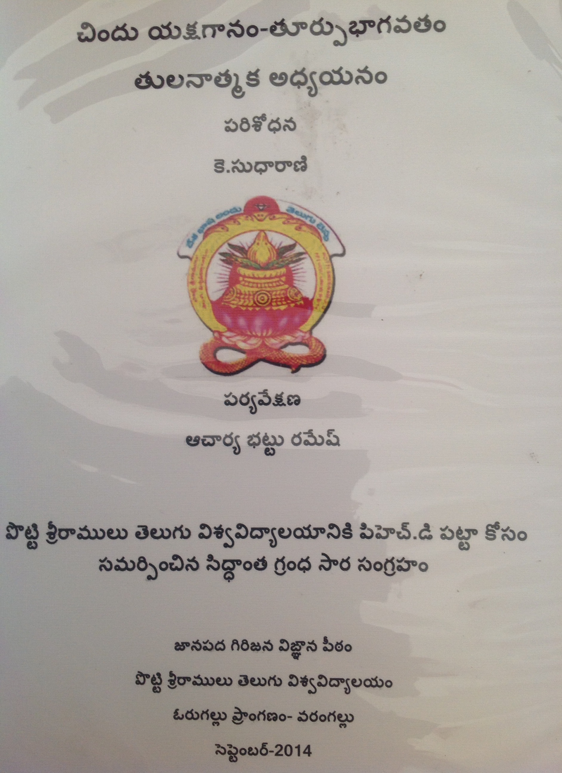 Chindu Yakshaganam. Toorpu Bhagavatam. Tulanatmaka Adhyayanam, Ph. D Doctorial Thesis, 2013-14 Batch